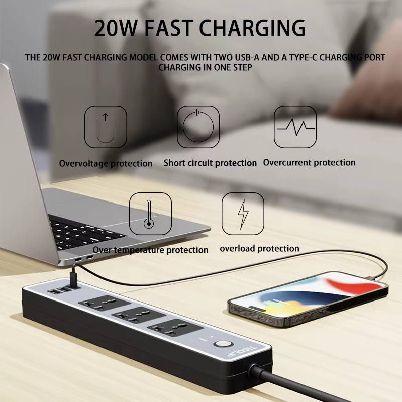 Configuration Universal sockets and 2*USB-A+1*Type C ports