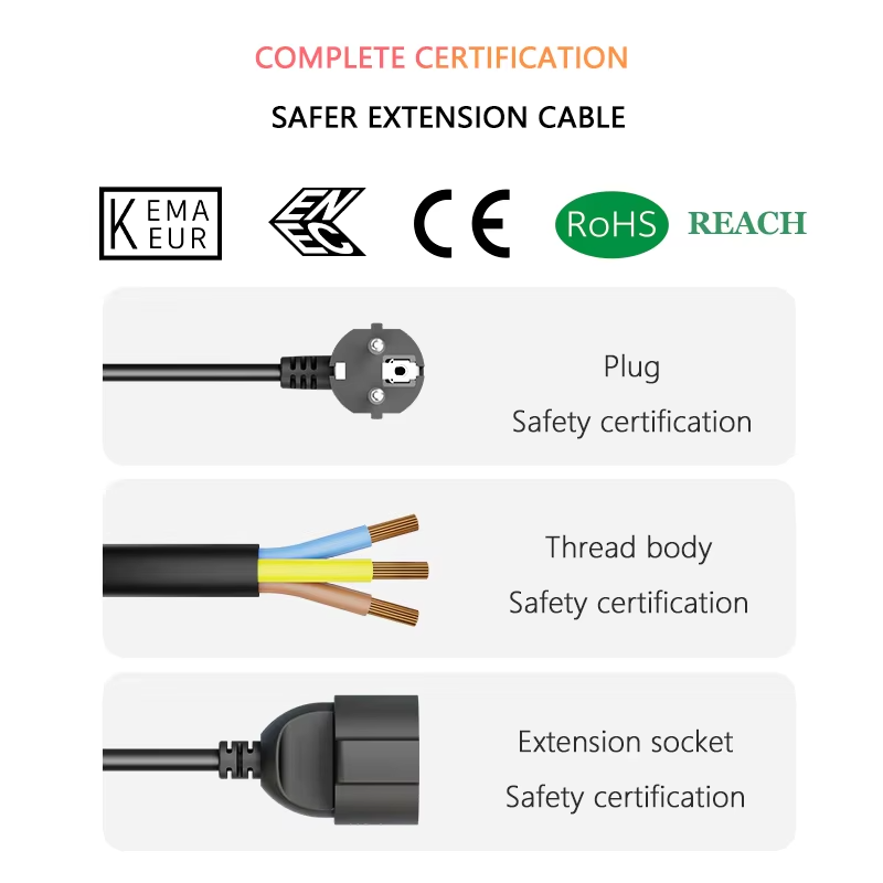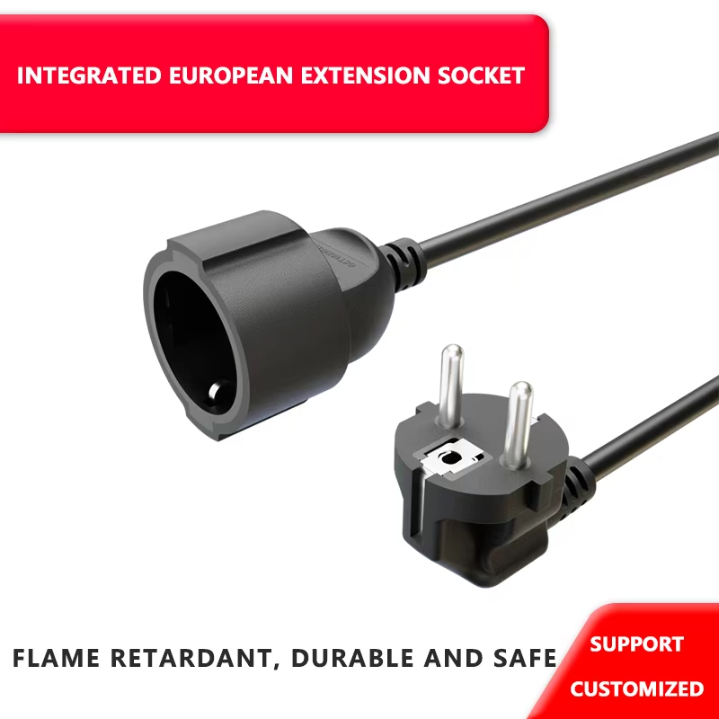 The LIPWEL Schuko power extension cable is engineered for reliable residential and general-purpose applications across Europe. Featuring a CEE 7/7 male plug and a Schuko CEE 7/3 connector, this extension cord supports up to 250V and 16A. Built with a durable black rubber or PVC cable (H07RN-F / H05VV-F with pure copper conductors), it is ideal for powering home appliances, telecommunication devices, consumer electronics, and instrumentation equipment.